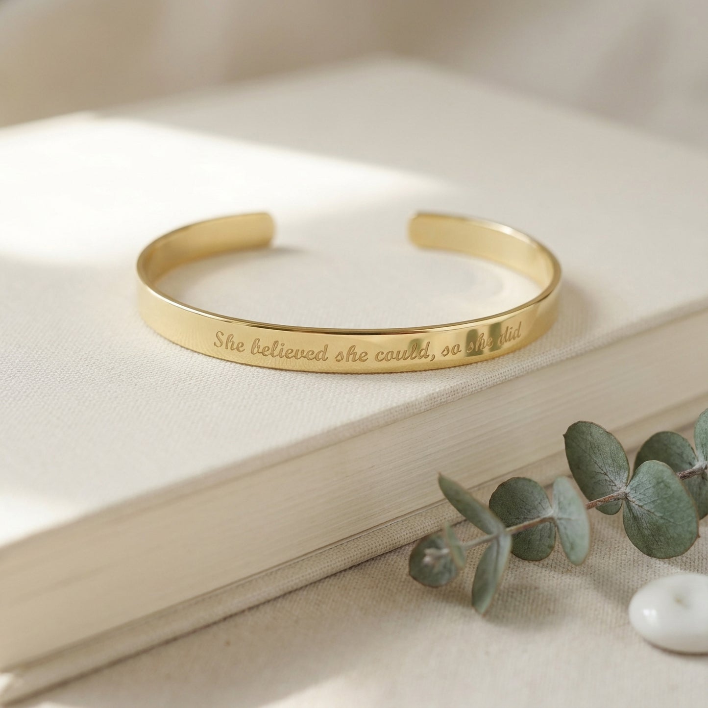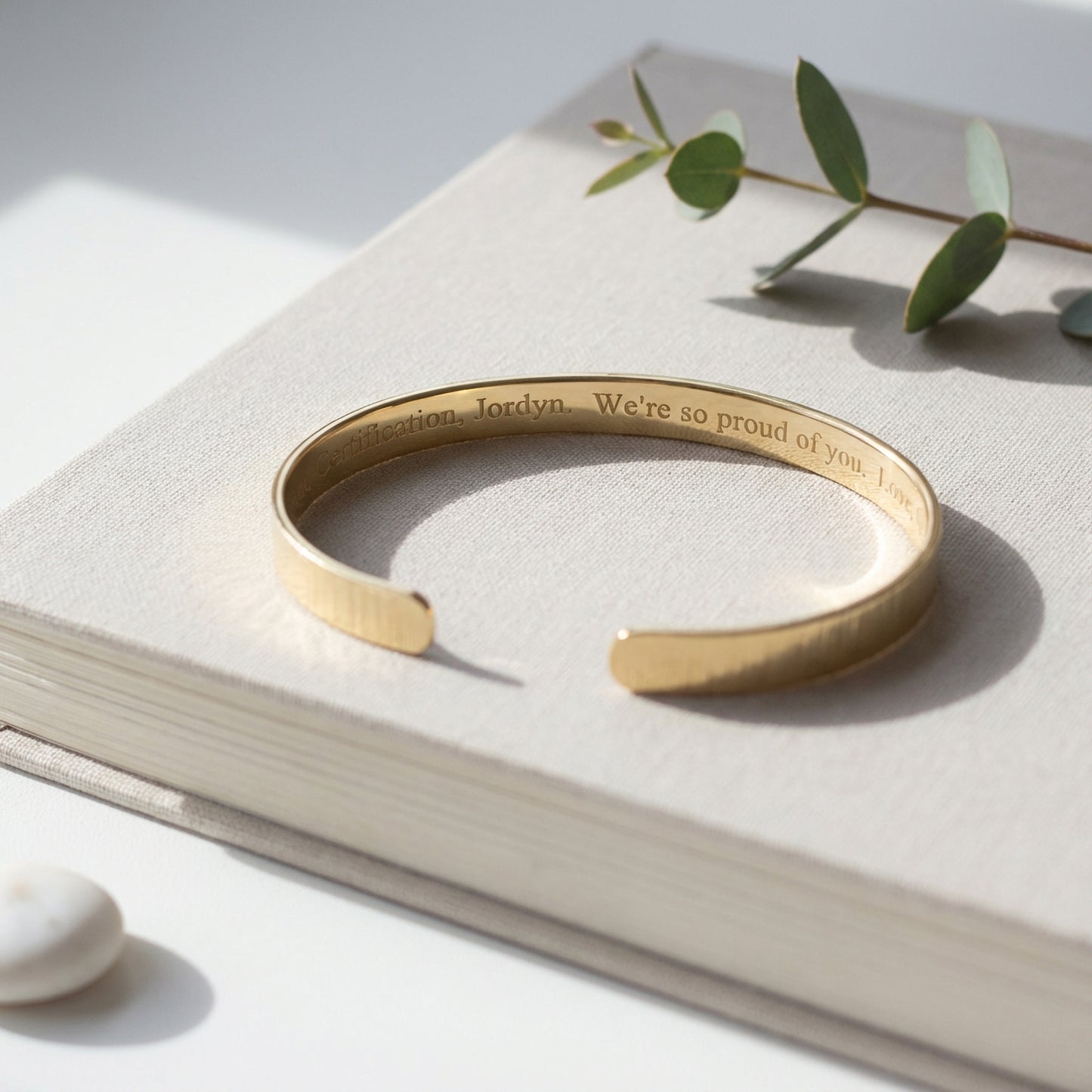 - Gold bracelet engraved with your chosen message.