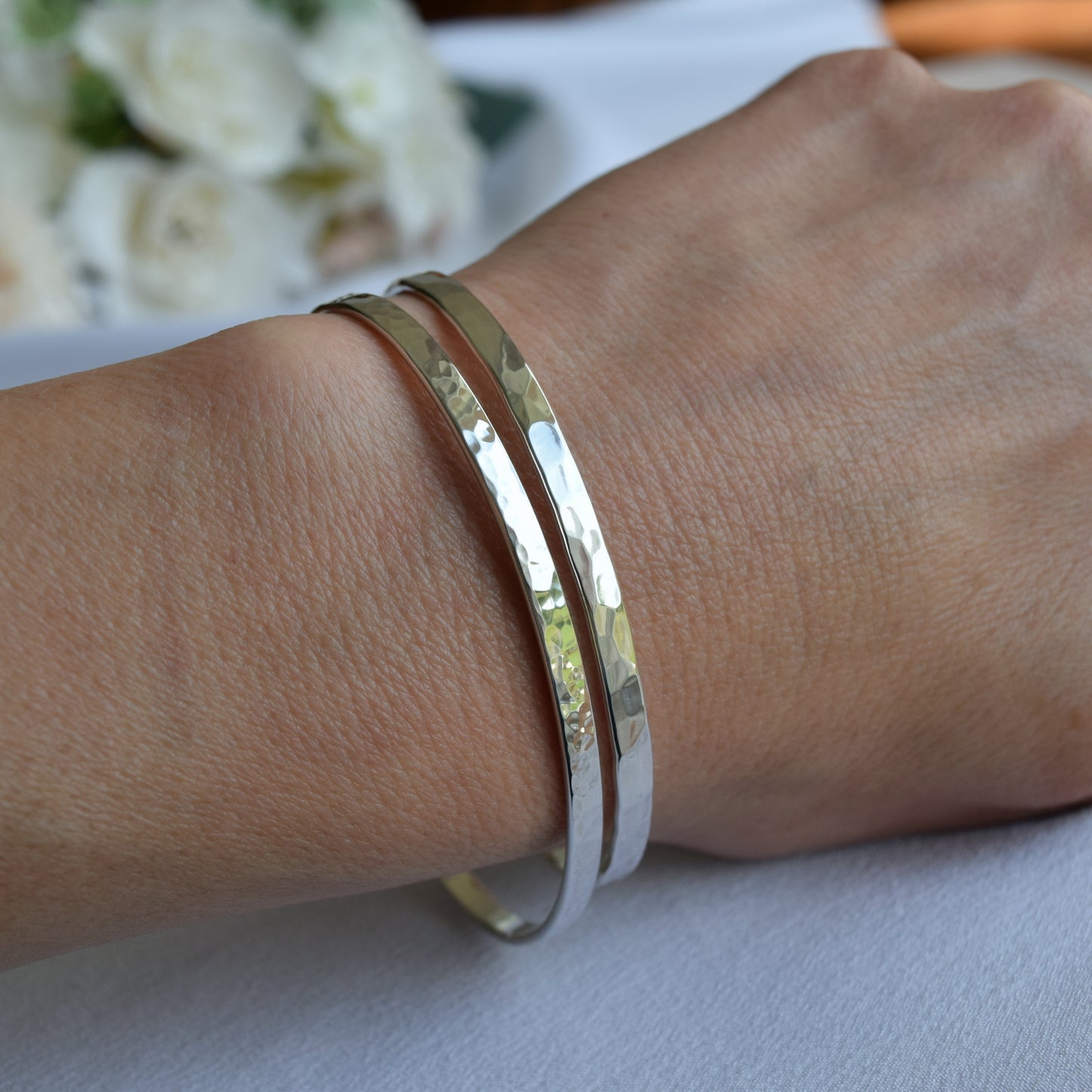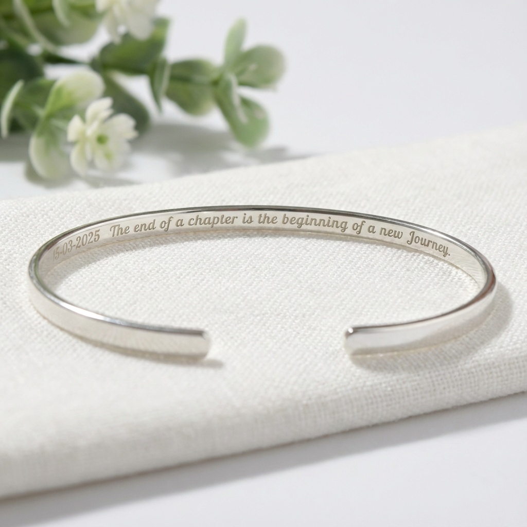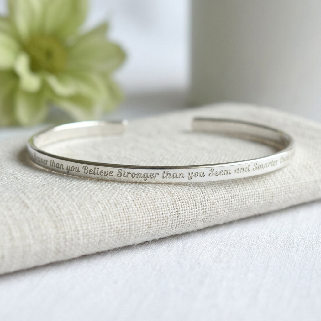 Sterling Silver 925 Engraved Bracelet, Graduation Gift, 3mm Wide, Hammered or Smooth Cuff