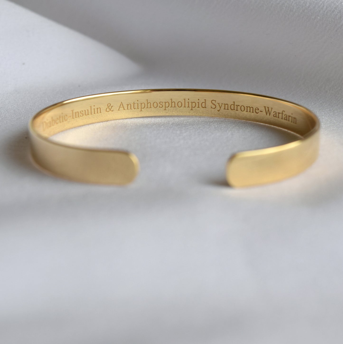 - 22K Gold plated bracelet may be customized with: allergies, medical conditions, medications, implanted devices, or other relevant medical information