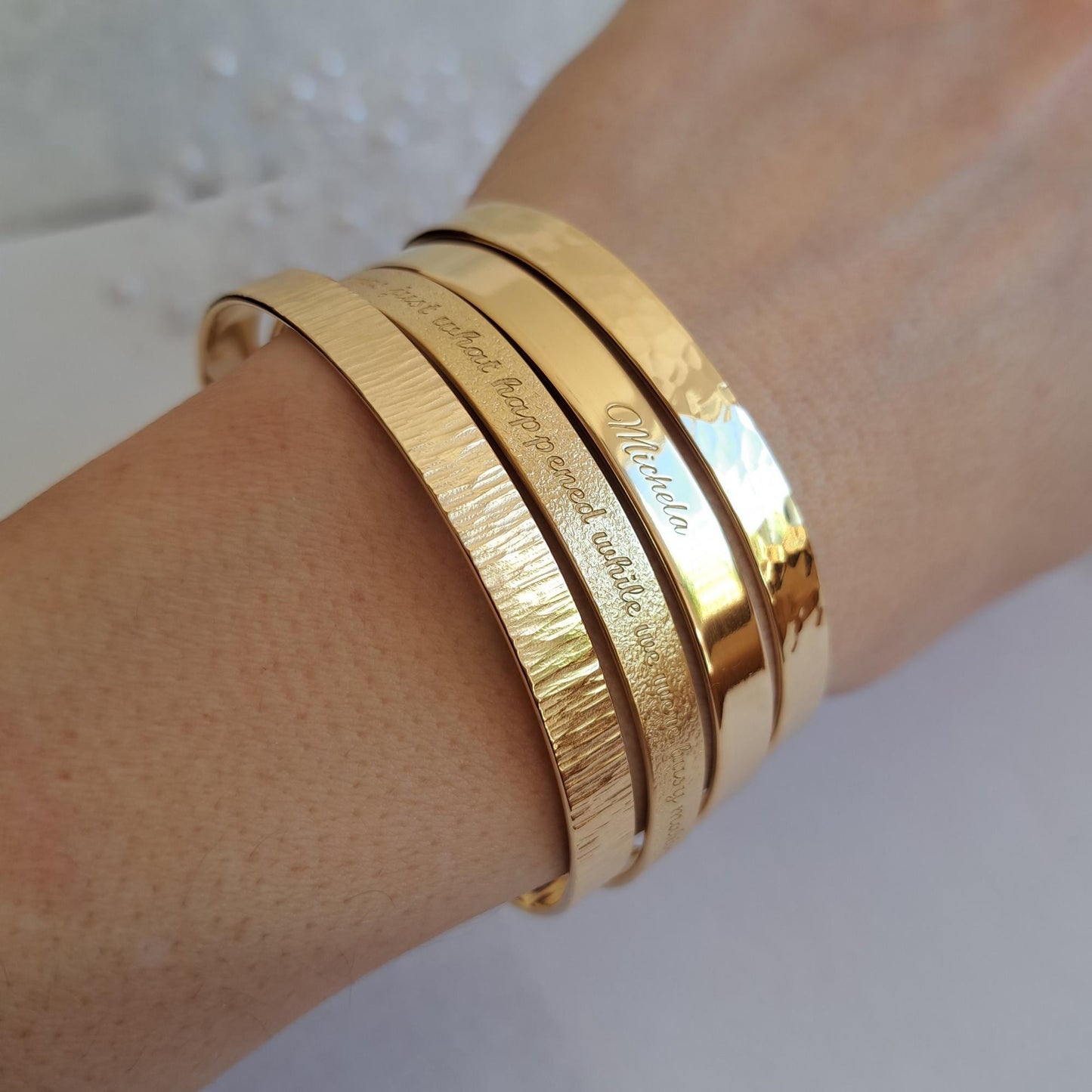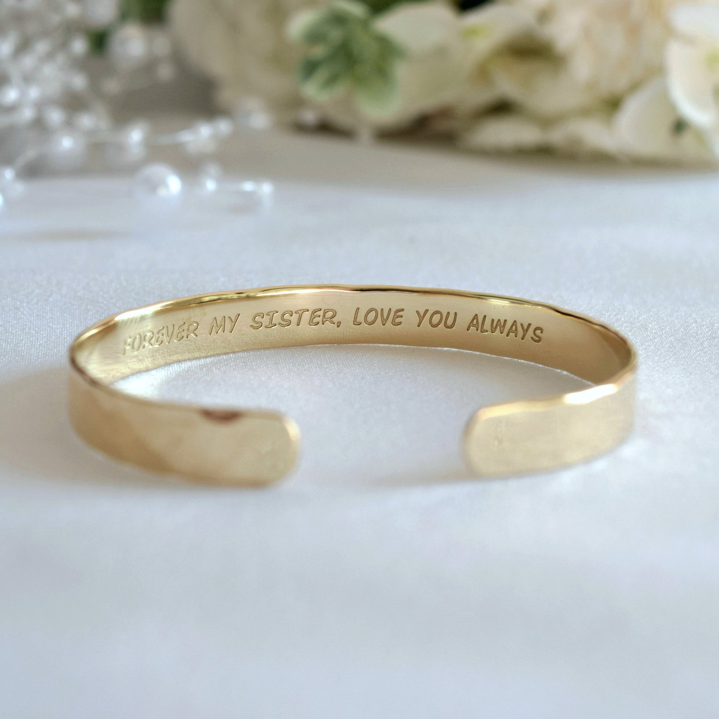 22K Gold Plated Cuff Bracelet: Personalized Love, Friendship Quote, 8mm Wide
