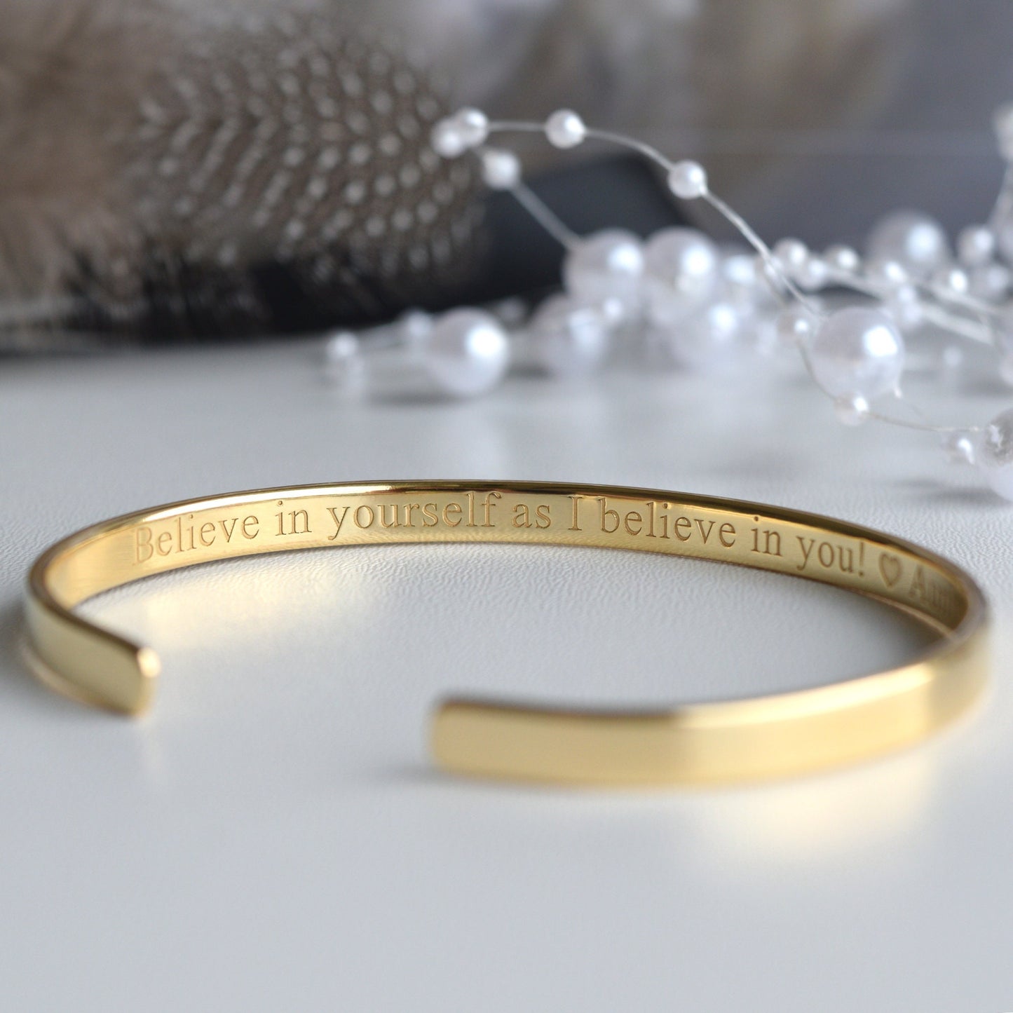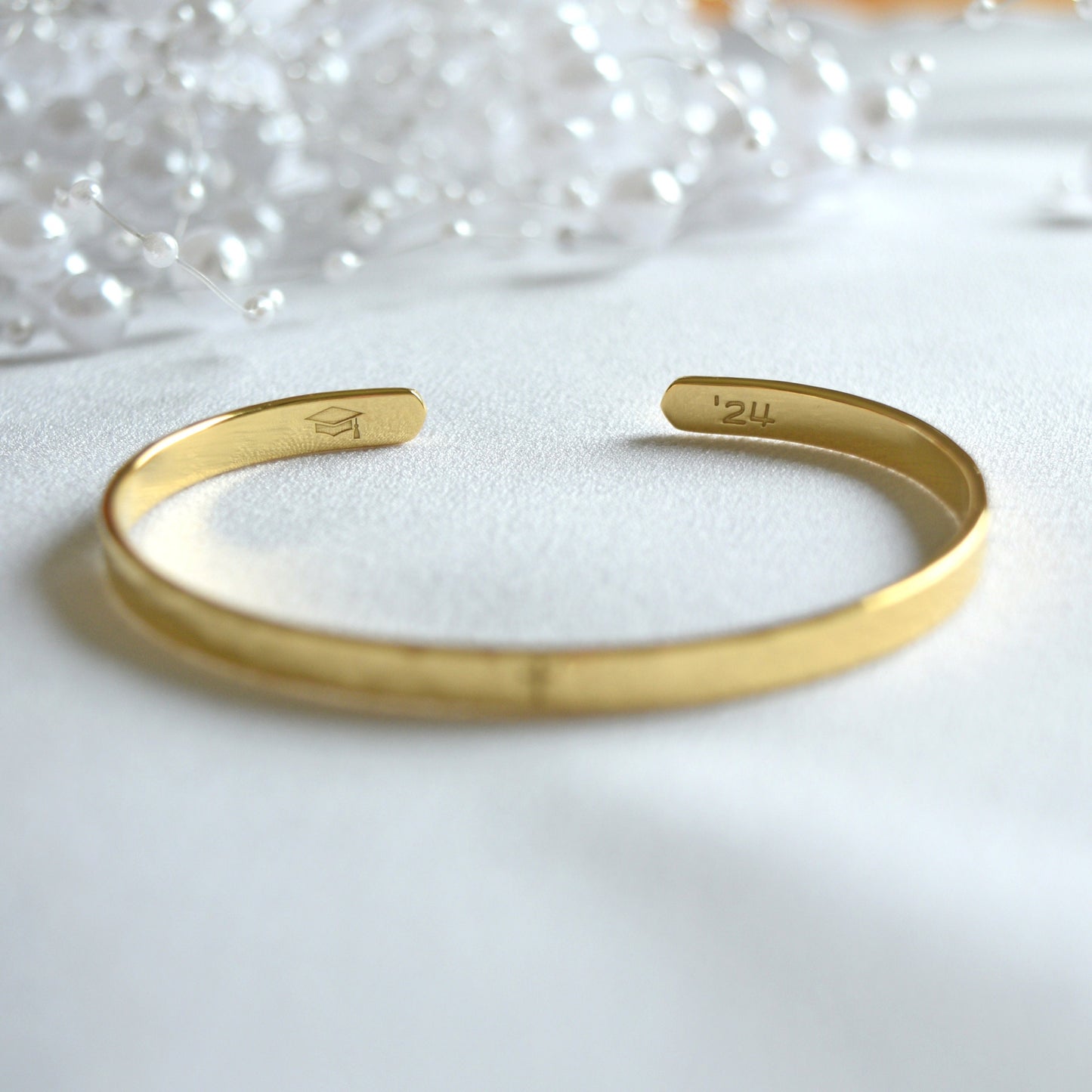 22K Gold Plated Engraved Bracelet, Personalized Graduation Gift