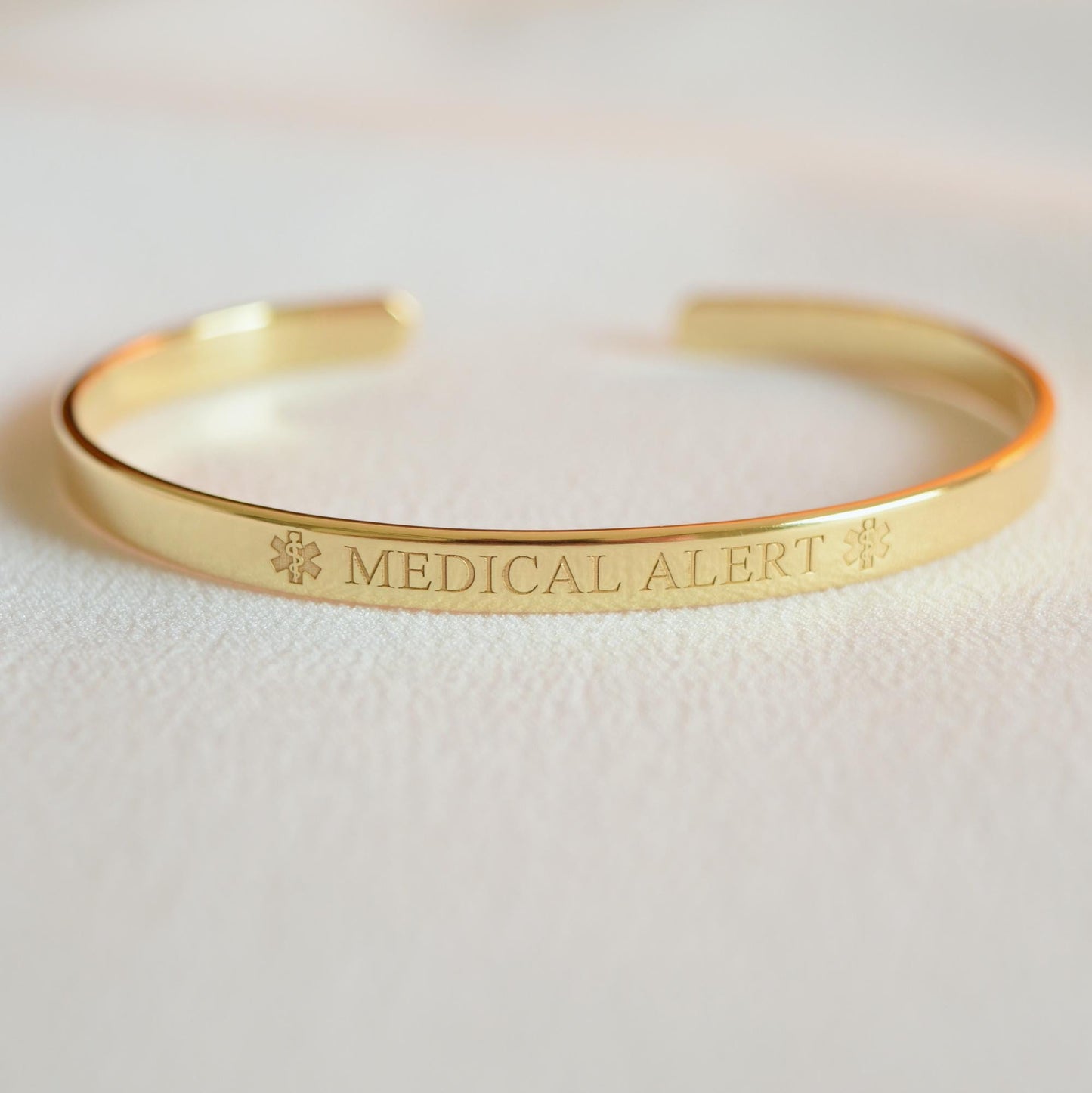 22K Gold Plated Engraved Medical ID Bracelet: Emergency Alert Cuff