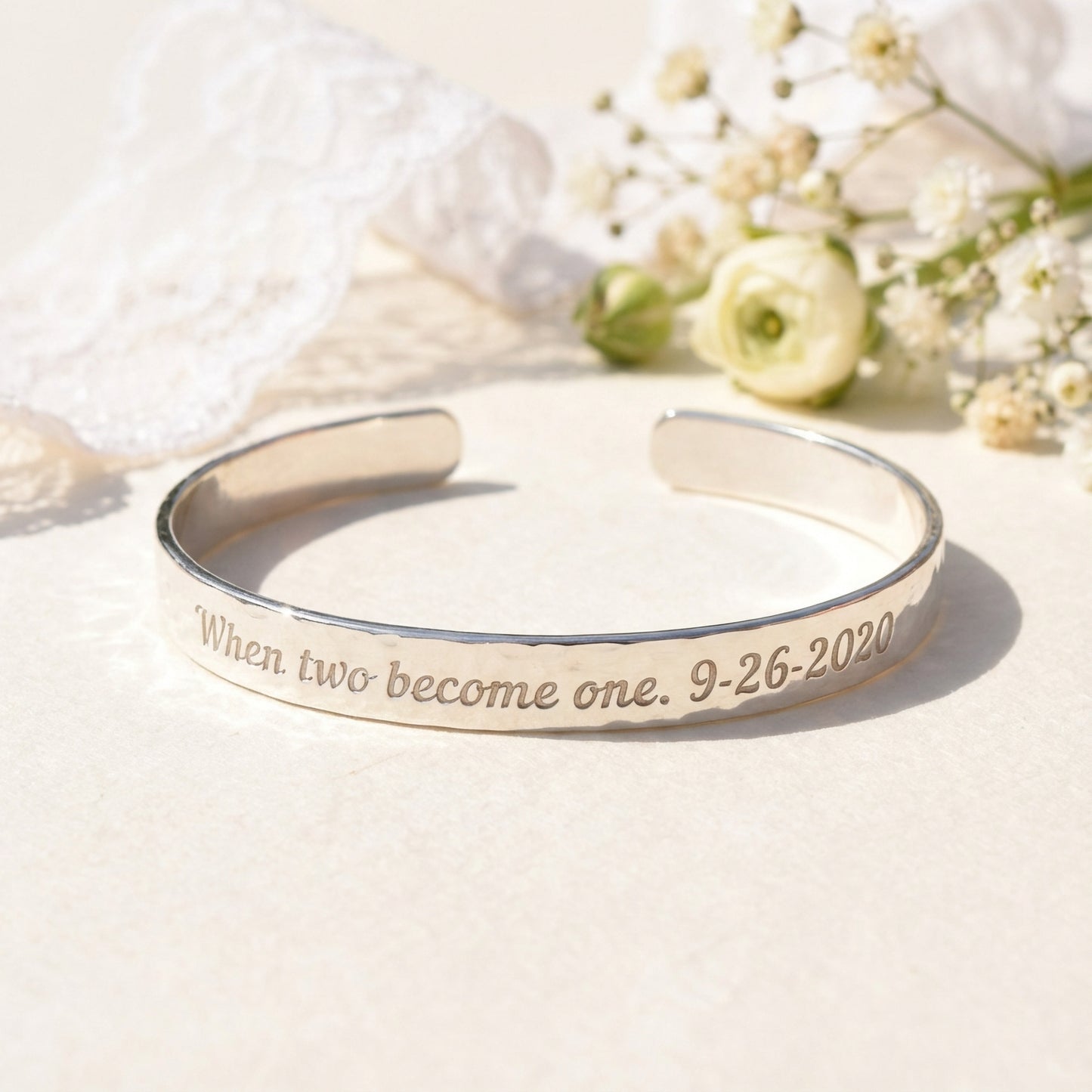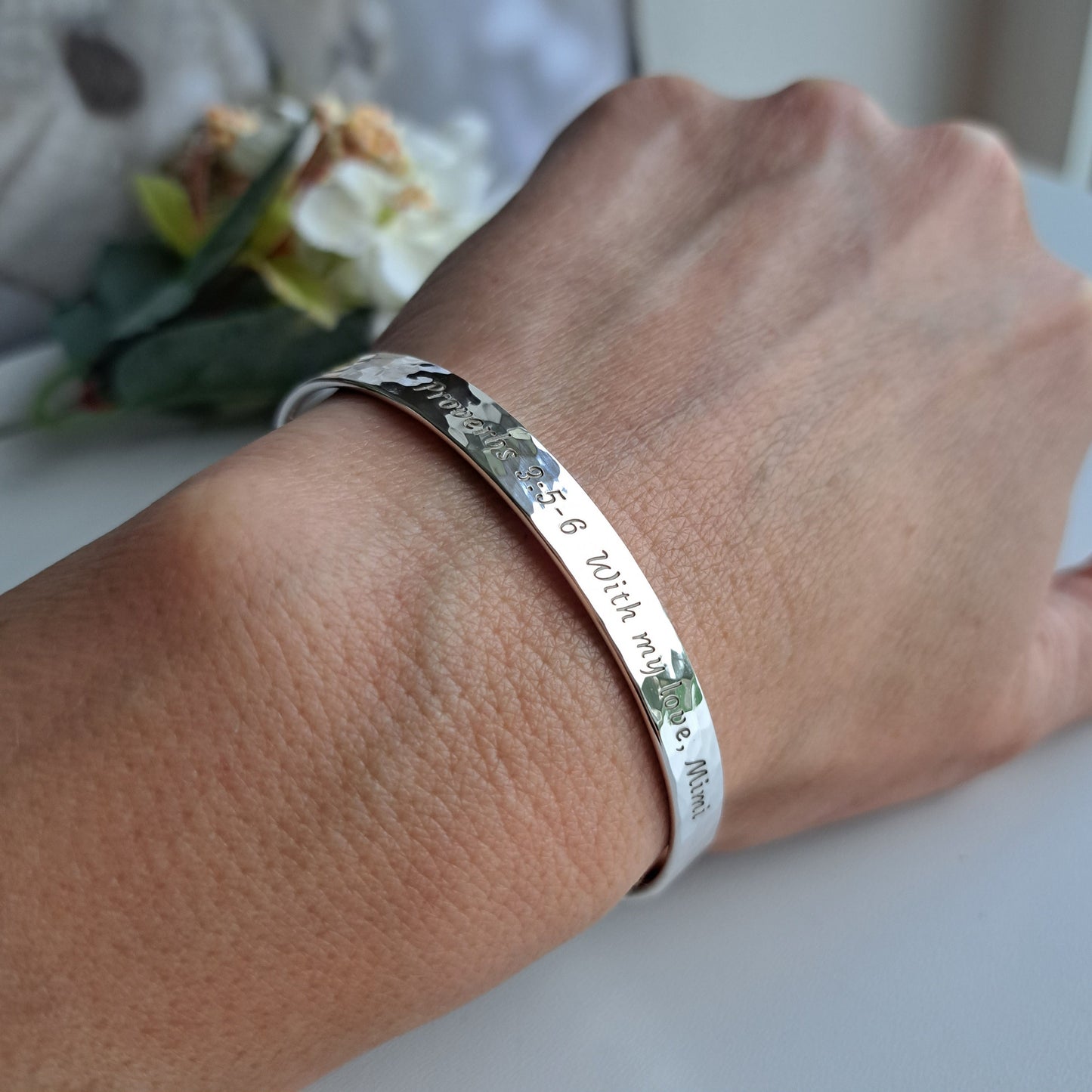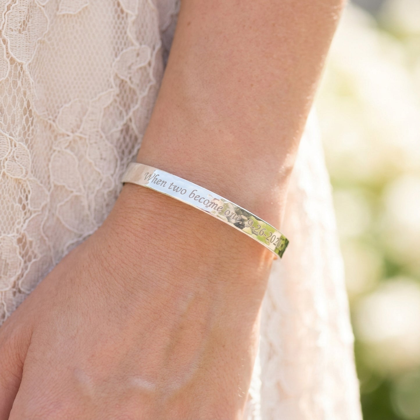 Engraved Sterling Silver Cuff Bracelet: Wedding Gift, Quote or Handwriting