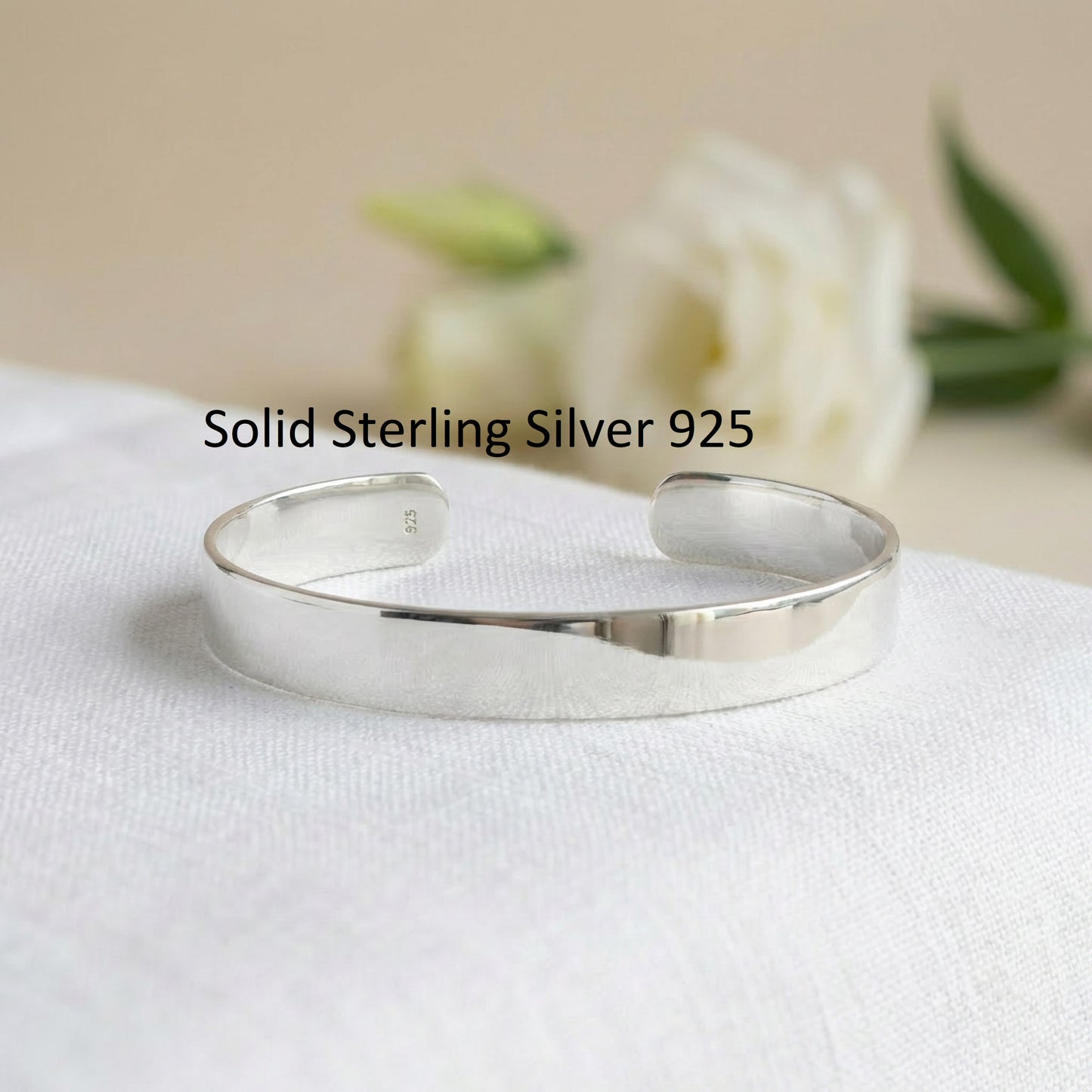 Sterling Silver Cuff Bracelet: Personalized Engraving, Solid Jewelry, 1/4 Inch Wide